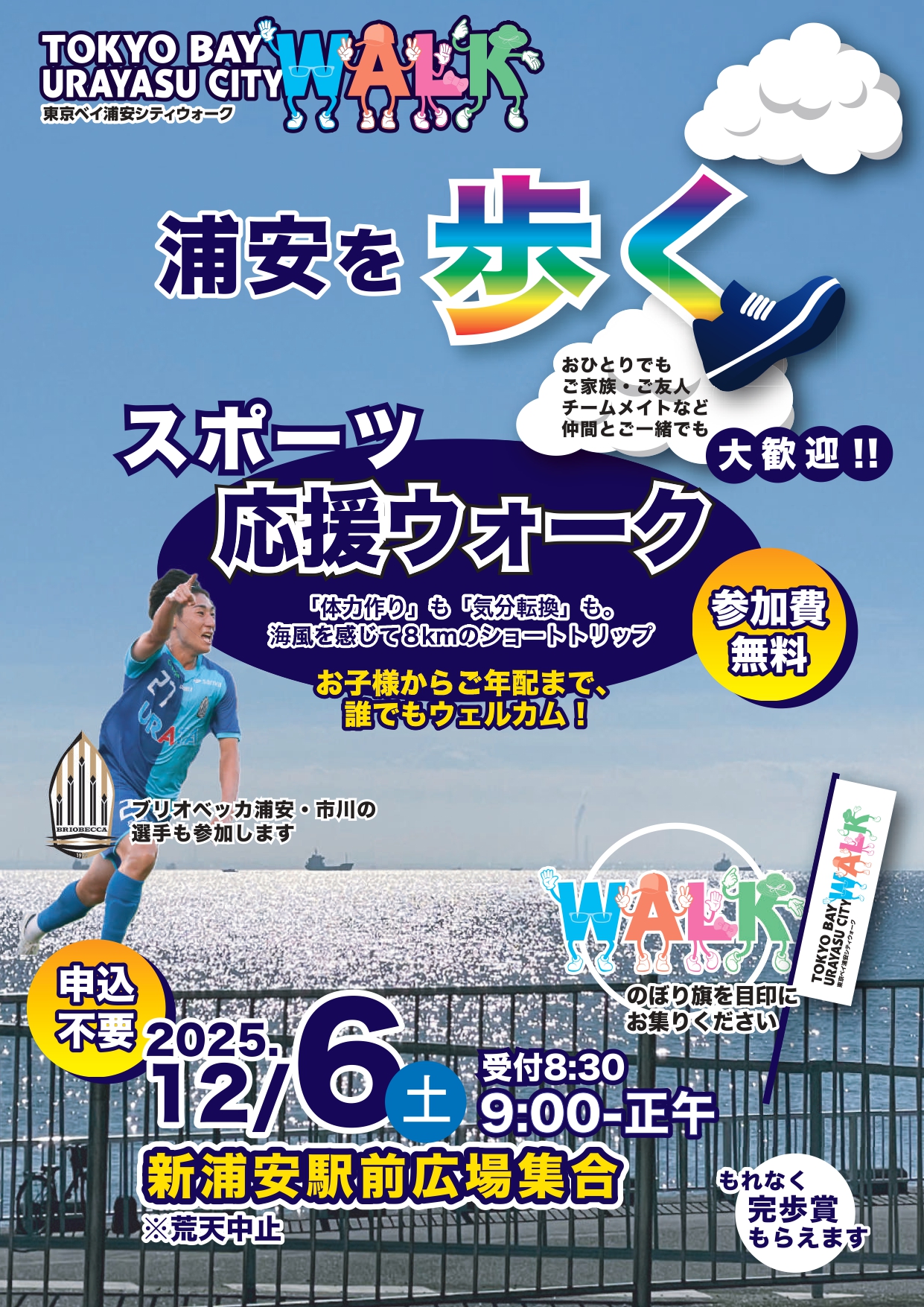 また、当イベントは、観る、する、支えるの観点でスポーツを盛り上げていくことにつながるようスポーツ応援ウォークとして設定させていただきました。みなさまの健康のきっかけとともに、浦安のスポーツの発展に繋がりましたら幸いです。